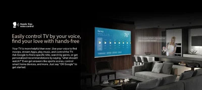The Haier H55P7UX comes with hands-free voice control, powered by Google Assistant. This feature allows you to control the TV, search for content, and manage smart home devices without needing to touch a remote. This provides a convenient and modern way to interact with your television.