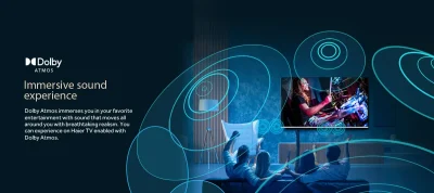 Immersive Dolby Atmos Audio: The TV is equipped with Dolby Atmos, which creates a three-dimensional soundscape for a more cinematic audio experience. With its 15W Ă— 2 speakers and various audio modes, the TV delivers clear and powerful sound that complements the high-quality visuals.