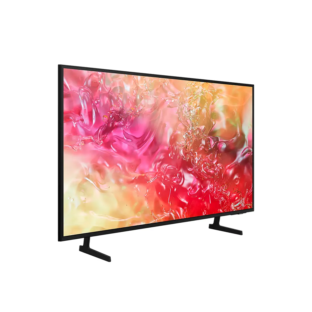 Designed to complement modern interiors, the Samsung UA50DU7700R 50 Inch Crystal 4K UHD Smart TV 2025 features a sleek, slim profile: