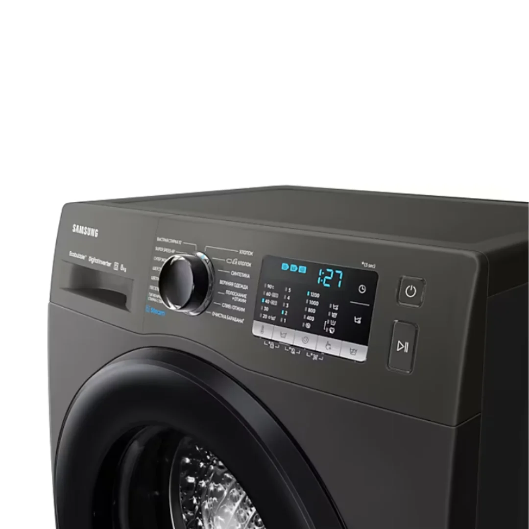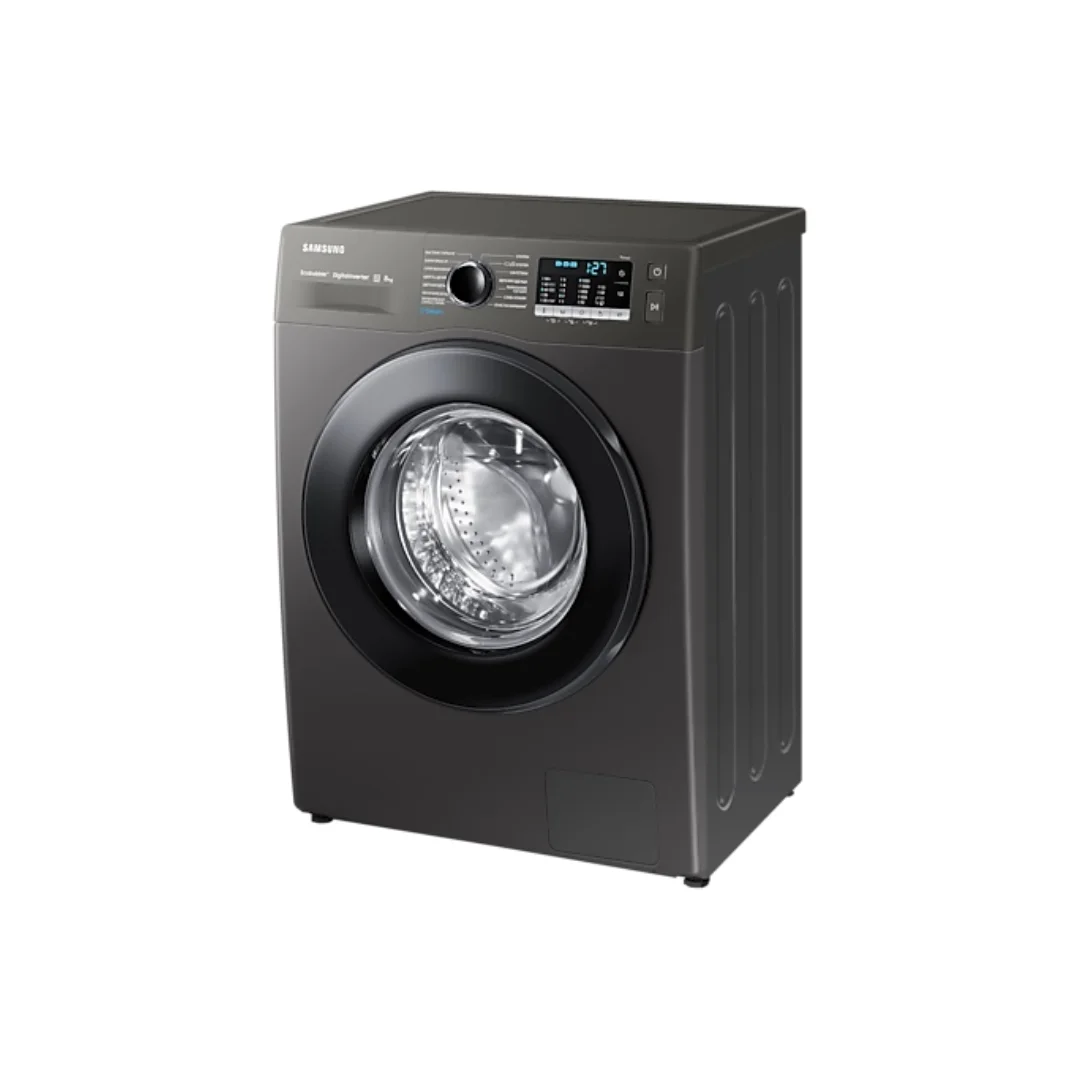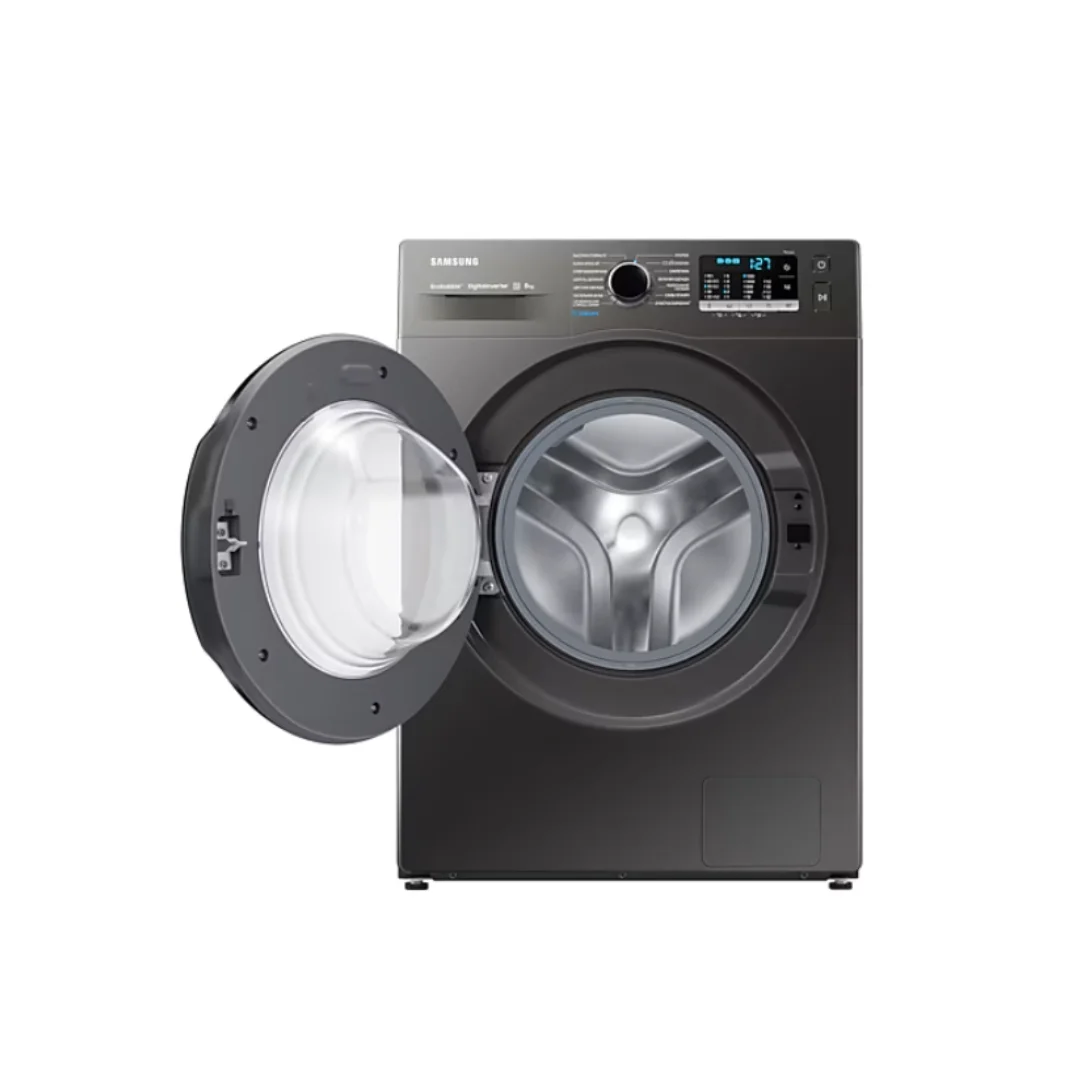 With its Inox body, carved black door, and LED display, this Samsung 8Kg Washing Machine adds a modern touch to your laundry room. Its compact dimensions (600 x 850 x 450 mm) make it suitable for small spaces.